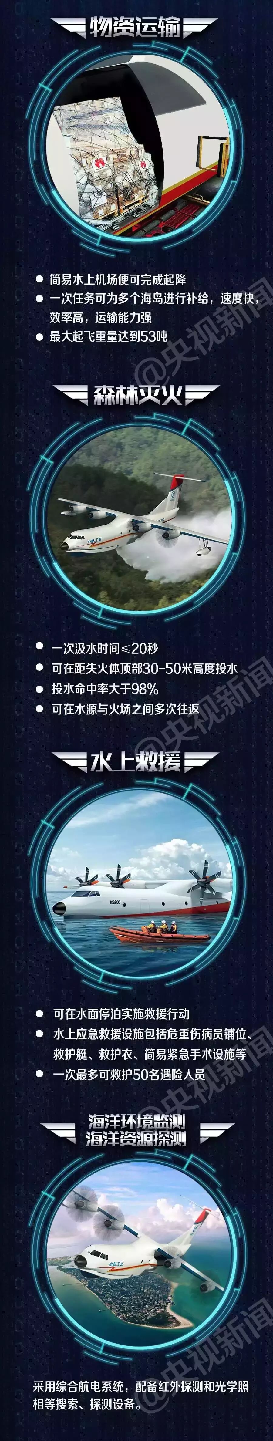 正是有了在水上起飛降落的”特異功能”,AG600在海上搜救,森林防火等應急救援領域,有著任何飛機都不可比擬的優(yōu)勢。