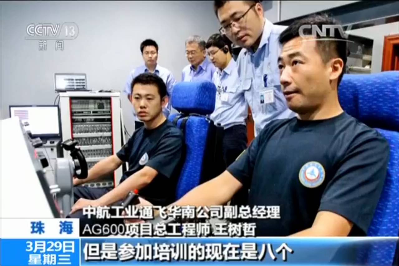 中航工業(yè)通飛華南公司副總經理 AG600項目總工程師王樹哲介紹,首飛機組正在進行培訓,機組上天是三人,但是參加培訓的現(xiàn)在是八人,飛行員有兩方面的要求,一是飛過大型飛機,有飛行經驗的,達到一定的小時數(shù);還要參加水上飛行的一些訓練和培訓,才能拿到飛行執(zhí)照。
